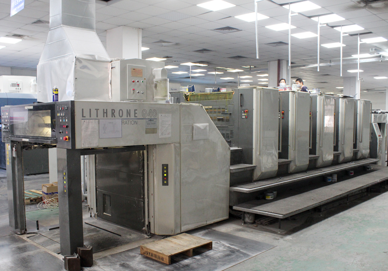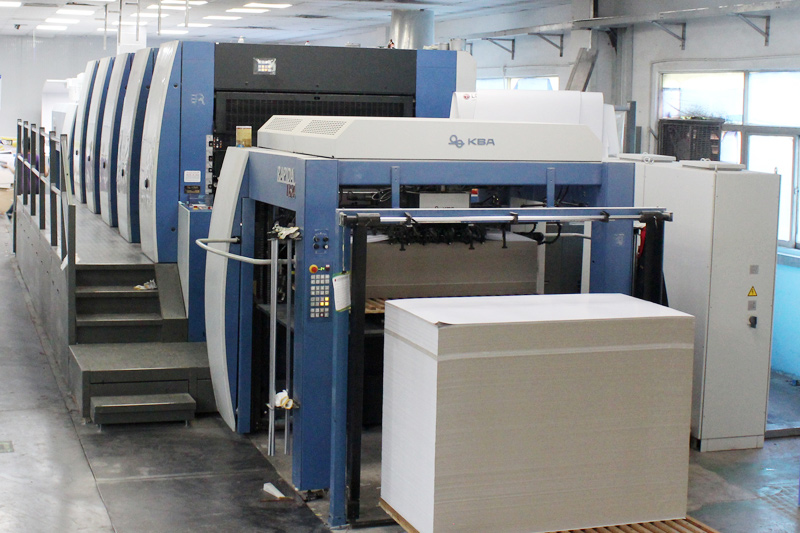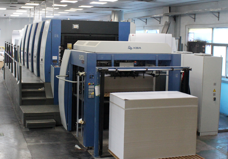 引進(jìn)德國羅蘭對(duì)開五色、羅蘭對(duì)開雙色、日本小森四開四色印刷設(shè)備,生產(chǎn)線完善